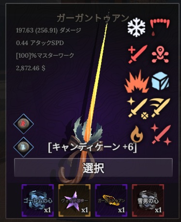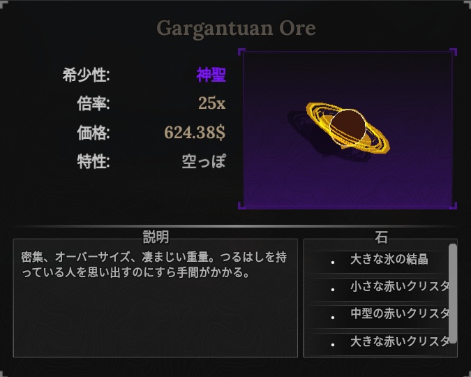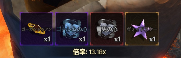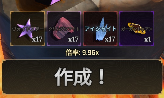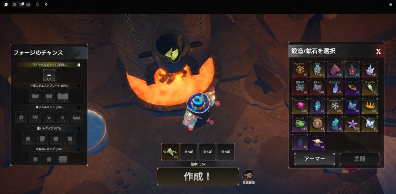 装備に使う鉱石の組み合わせについては前回の記事を参照。